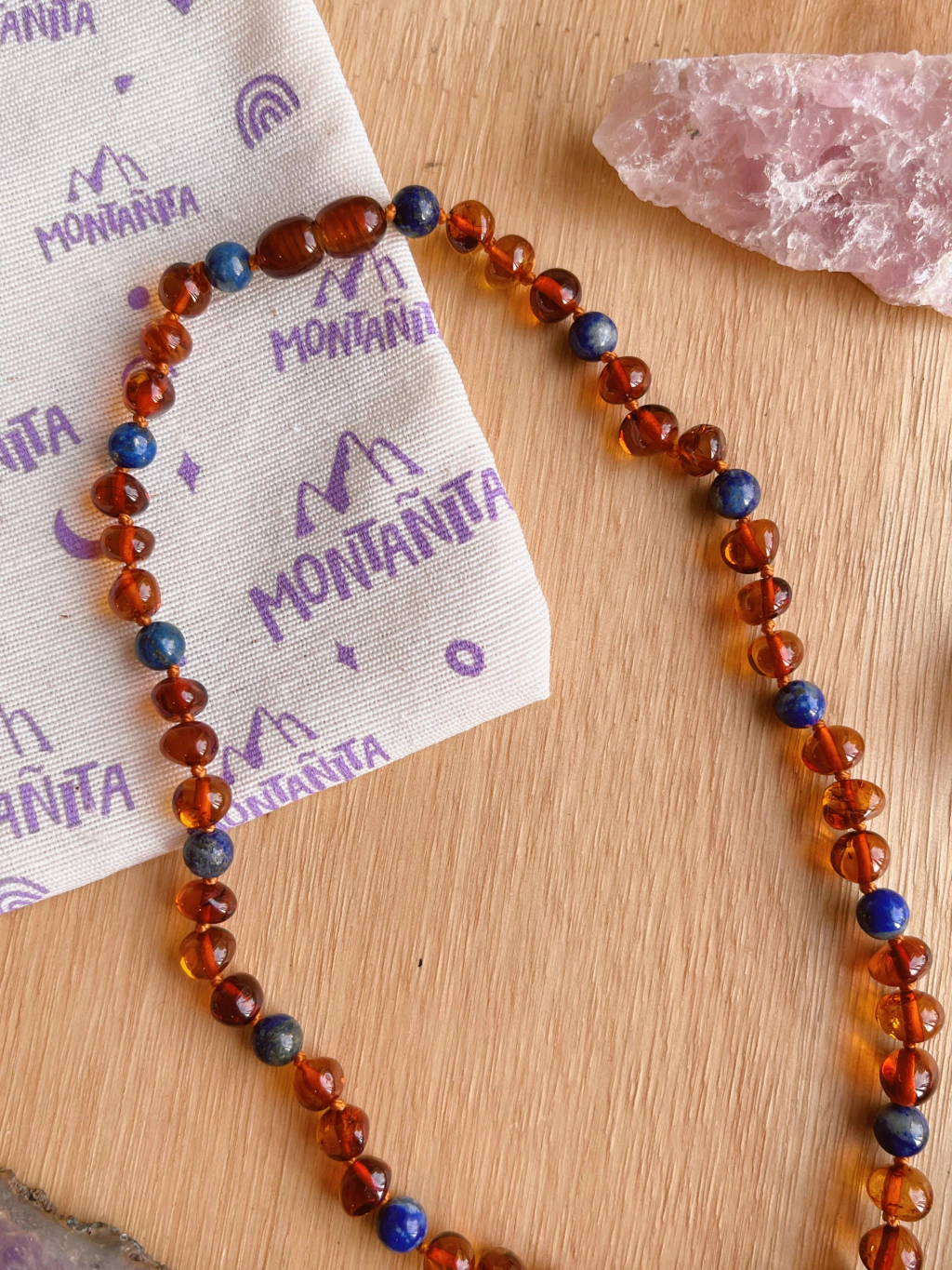 El ambar contiene acido succinico, en contacto con el cuerpo es despedido y absorbido por nuestro torrente sanguineo, actuando como analgesico y antiinflamatorio natural; alivia dolores cervicales, articulares, de artritis, calma alergias e infecciones, regula glandula tiroides y tambien estabiliza el sistema inmunologico general.