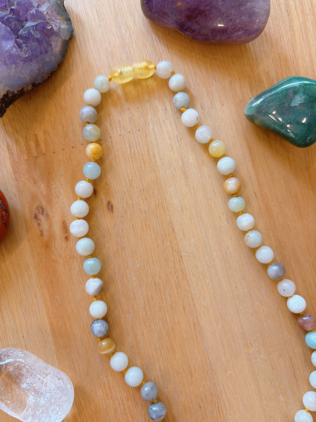 La amazonita tiene una poderosa acción filtradora. A nivel físico bloquea las tensiones geopáticas, absorbe radiaciones microondas y las emanaciones de los móviles, así como proteger de la contaminación electromagnética. A nivel mental filtra la información que pasa por el cerebro y la combina con intuición. Es una piedra extremadamente relajante y también te ayudará a comprobar los dos lados de un problema o distintos puntos de vista. A nivel emocional, la amazonita alivia los traumas emocionales, calmando la preocupación y el miedo. Disipa la energía negativa y el enfado. Espiritualmente, la amazonita como elixir, es extremadamente benéfica a todos los niveles de consciencia. A nivel curativo, la amazonita sana y abre los chacras del corazón y de la garganta, potenciando la comunicación amoriosa.