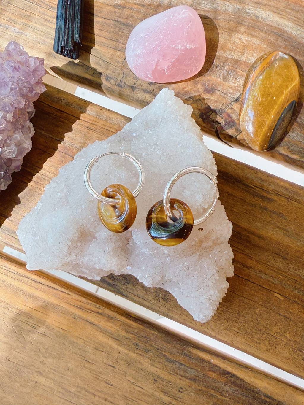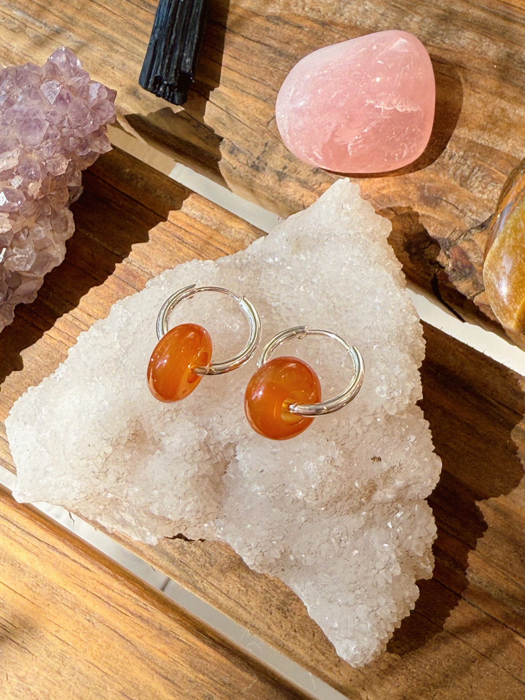 Aros Acero Blanco con Donas de Piedra Natural de Ágata Cornalina, Ojo de Tigre, Ágata India, Unakita y Obsidiana. Miden entre 1 cm y 2 cm