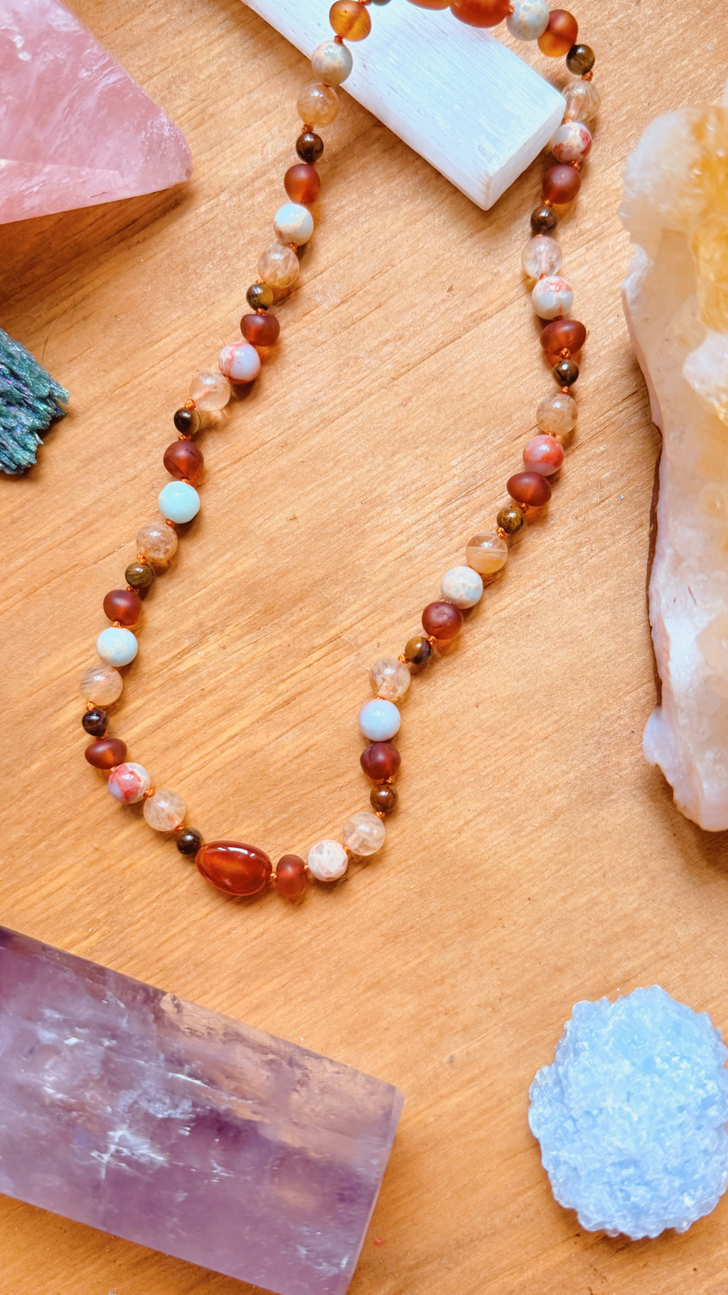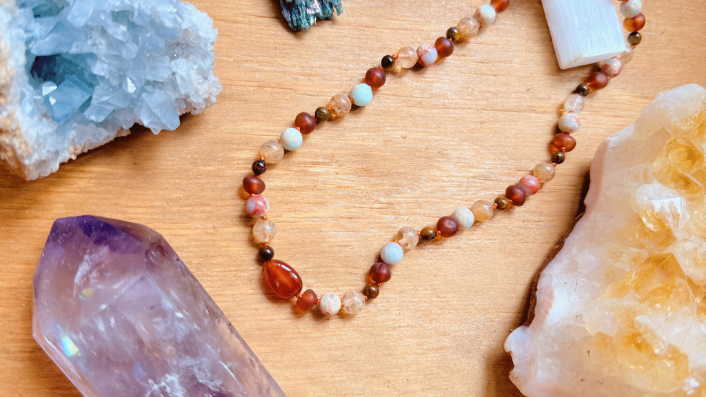 Descubre el Collar Piscis, una pieza única diseñada especialmente para quienes nacen bajo este signo. Este collar está compuesto por una hermosa combinación de piedra luna, calcita, amatista y aguamarina, cada una elegida por sus propiedades energéticas y su conexión con el mundo emocional.