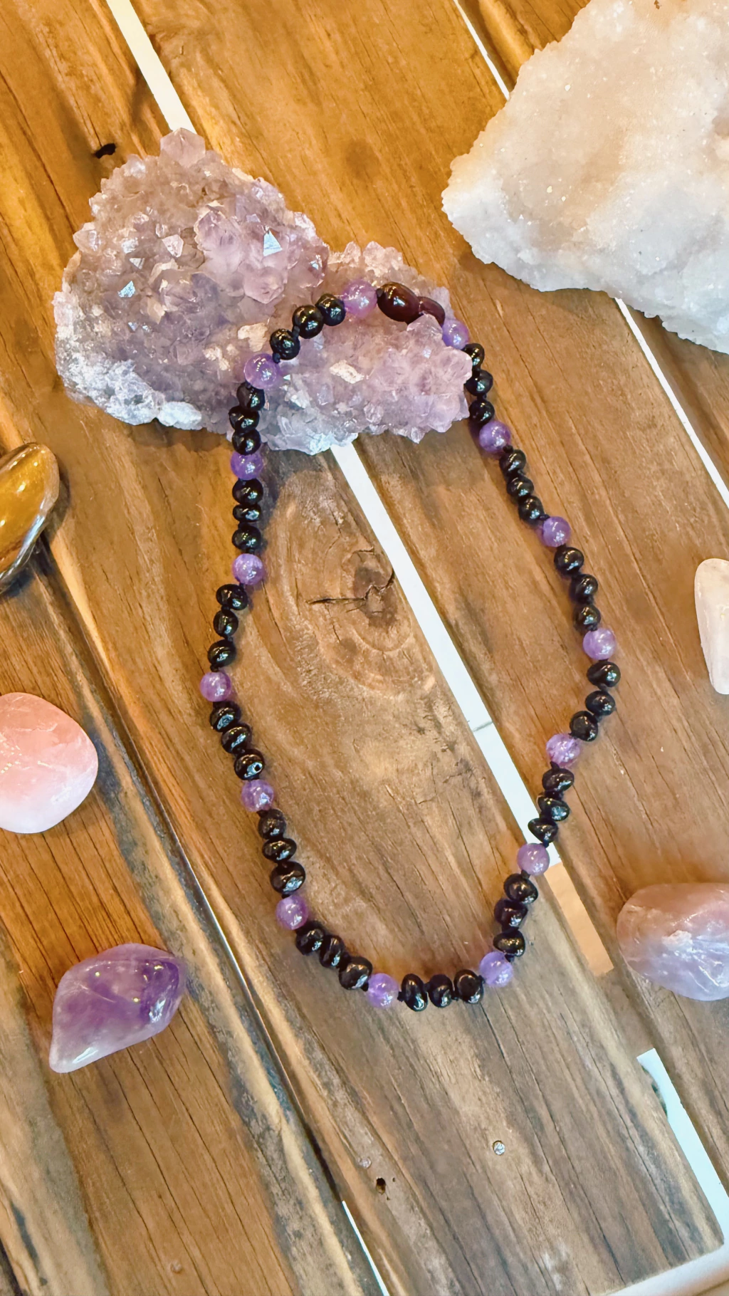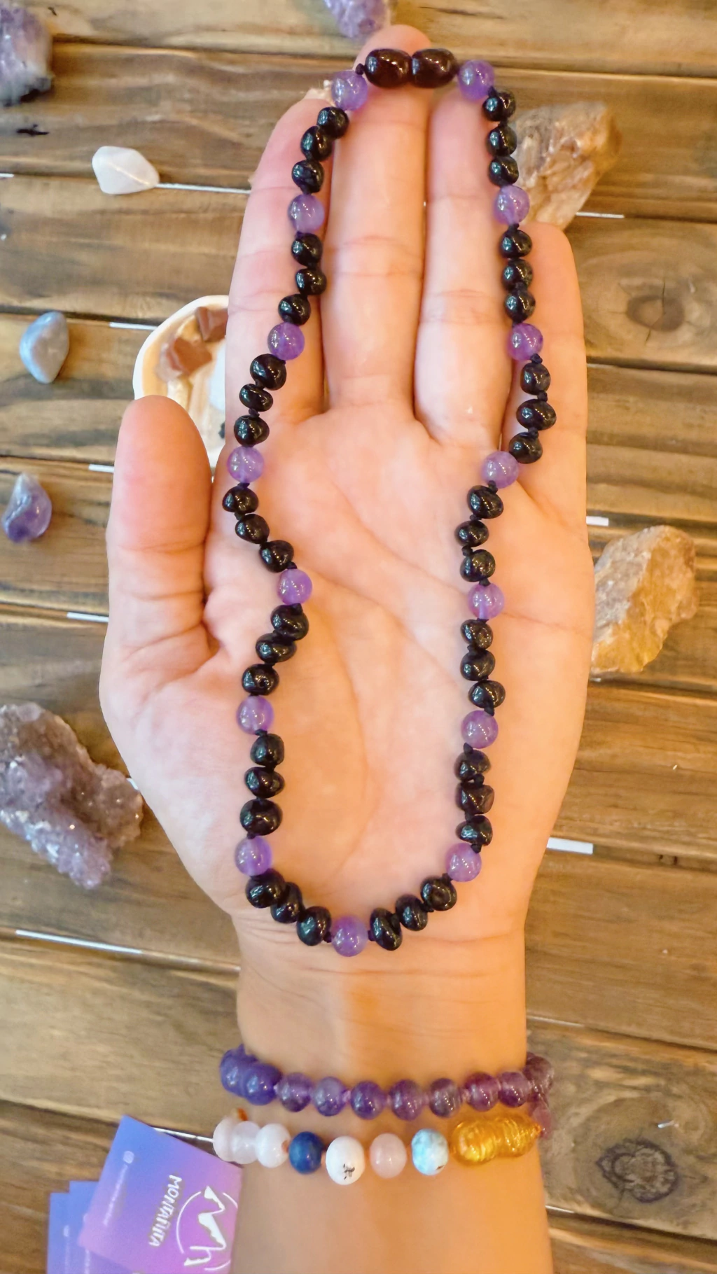 El Collar Brote es una pieza artesanal que une la calidez del Ámbar Cherry con la energía protectora de la Amatista. Ideal para quienes buscan armonía, alivio físico y equilibrio emocional en su día a día.