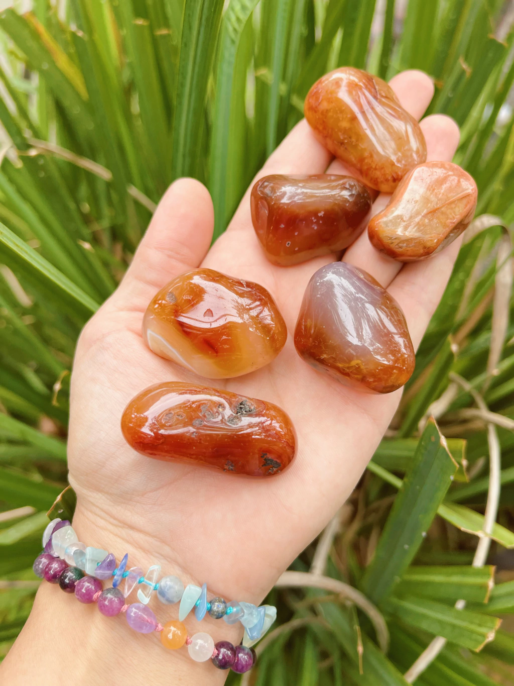 Esta piedra tiene un gran poder estabilizador, además realiza un gran aporte a la vida estimulando la motivación y la creatividad, es excelente para aquellos que desean salir de su zona de confort. Ayuda a superar el decaimiento emocional y la confusión, esto se debe a que tiene el poder de equilibrar nuestras emociones. También se utiliza como amuleto en los hogares y negocios como protección contra el mal de ojo, la envidia y los pensamientos negativos dirigidos hacia el poseedor del amuleto. La cornalina está asociada a la energía del poder y la ambición bien encausadas. Por ello es comúnmente utilizada para alcanzar el éxito profesional, calmar las tensiones en reuniones decisivas y para dar claridad mental al momento de tomar una decisión de índole laboral.