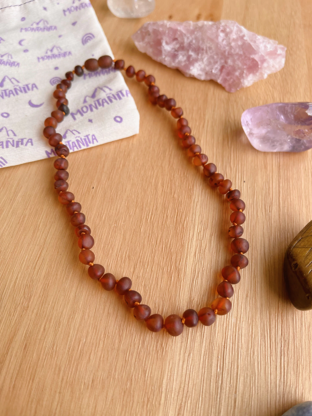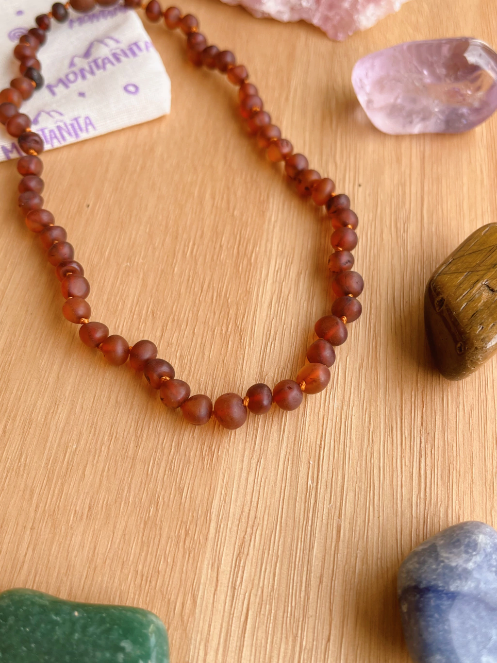 El Ámbar Cognac Sin Pulir contiene ácido succínico, que al entrar en contacto con el cuerpo es absorbido por el torrente sanguíneo, actuando como analgésico y antiinflamatorio natural.