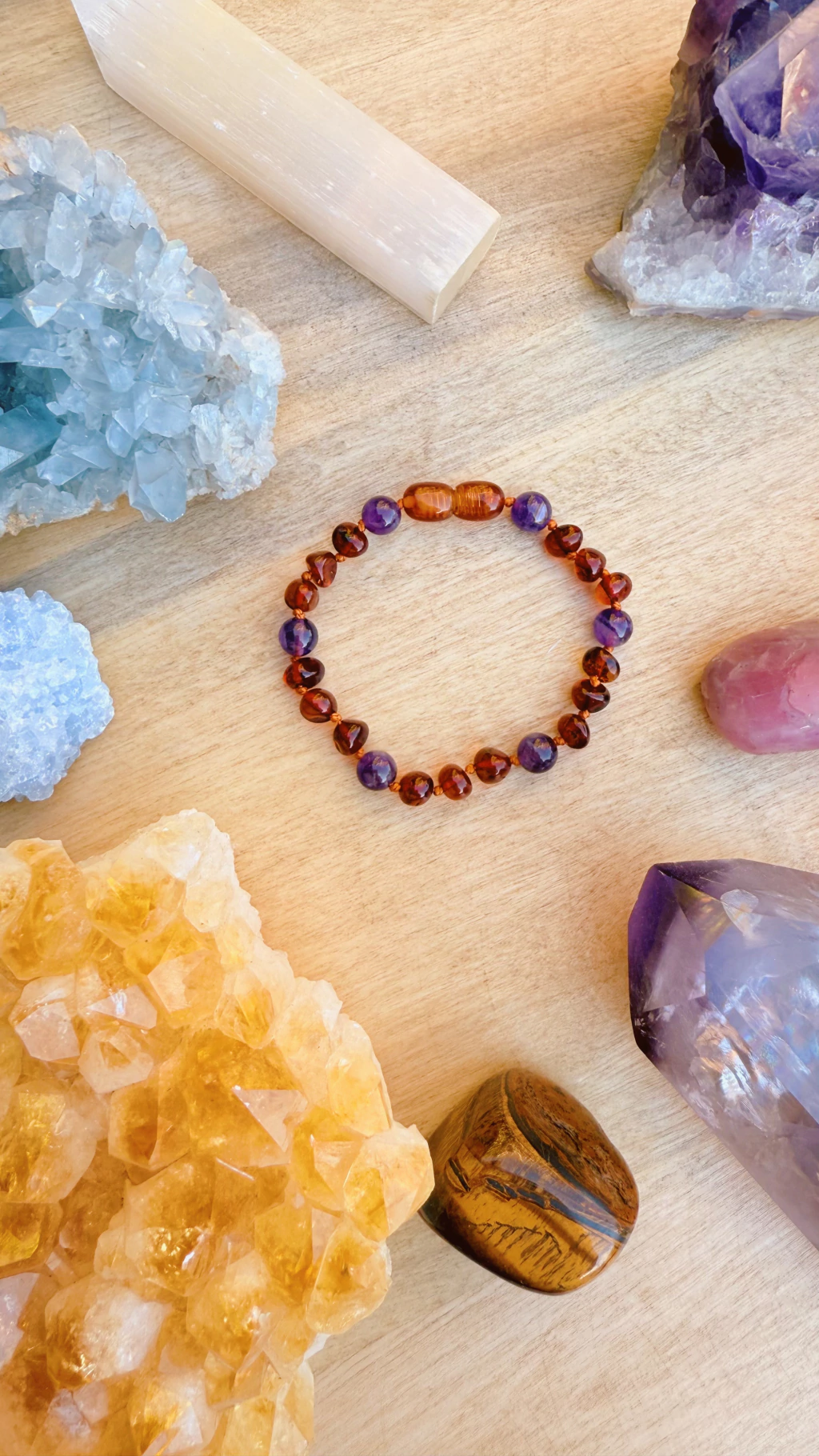 Pulsera Brote es la unión de Ámbar Cognac con Amatista.