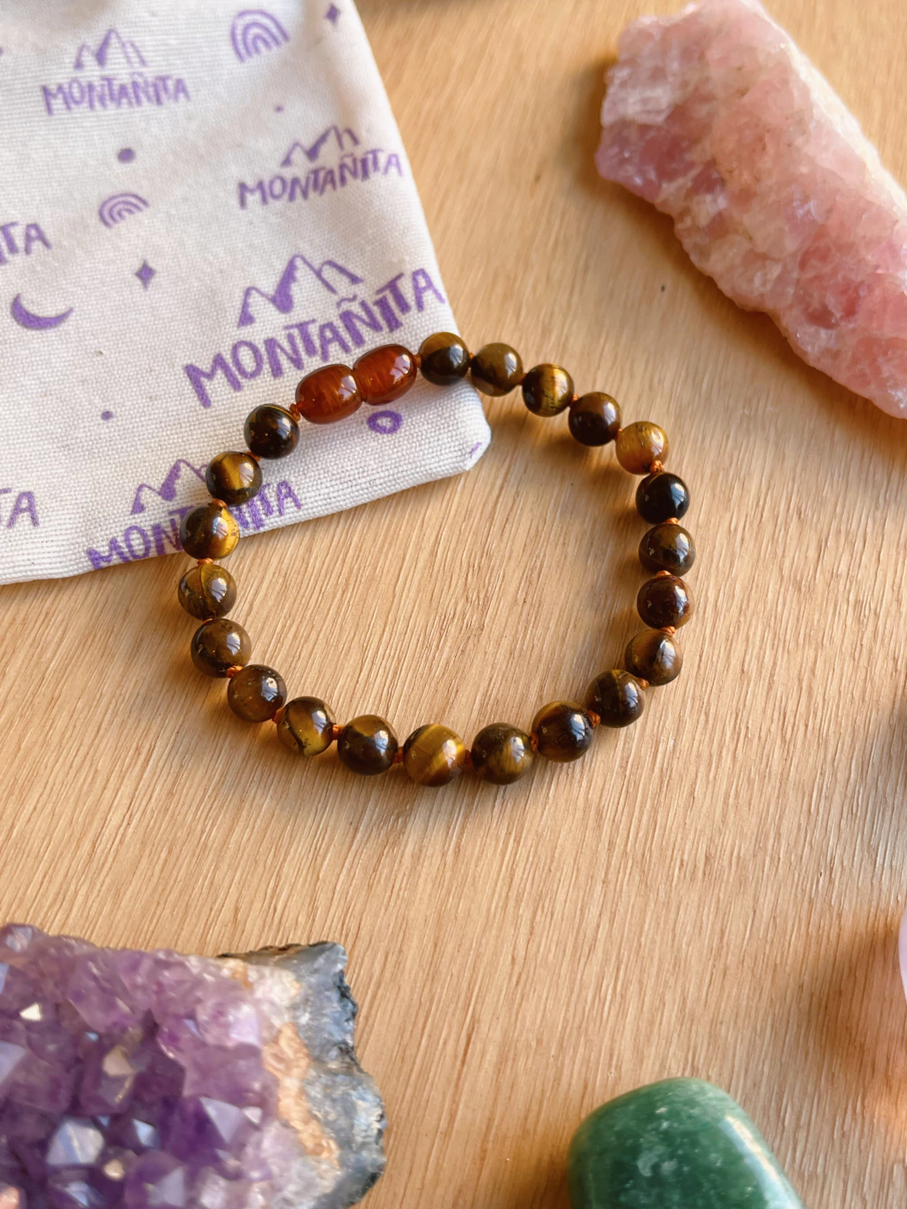 Armado con hilo extra resistente, anudado entre cada cuenta para mayor seguridad.