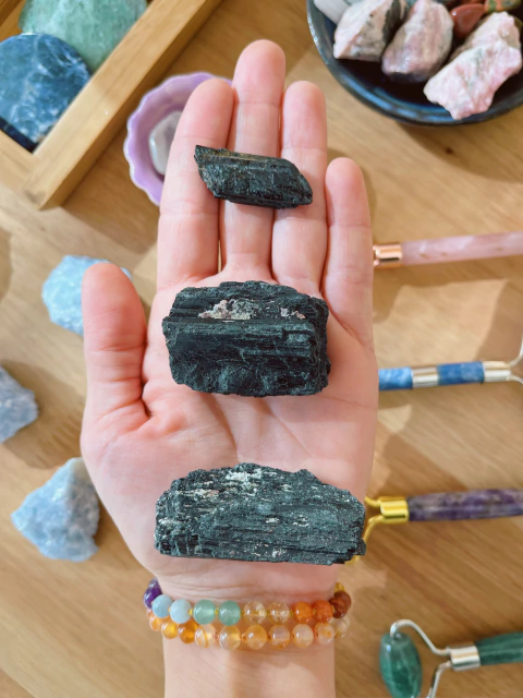 Sanación y protección: Las varas de turmalina natural son excelentes para la sanación, ya que limpian el aura, retiran bloqueos, dispersan energías negativas y equilibran los chacras y meridianos.