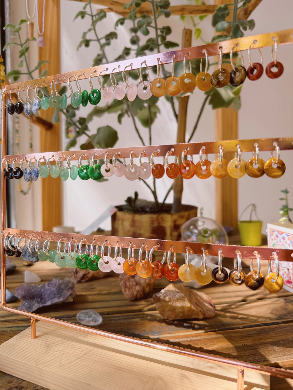 Estos aros de plata 925 están elaborados con donas de piedra natural que aportan poderosos beneficios energéticos. Cada piedra está cuidadosamente seleccionada para brindar equilibrio, protección y bienestar. Con un diseño elegante y cómodo, estos aros son ideales para quienes buscan una joya con significado.