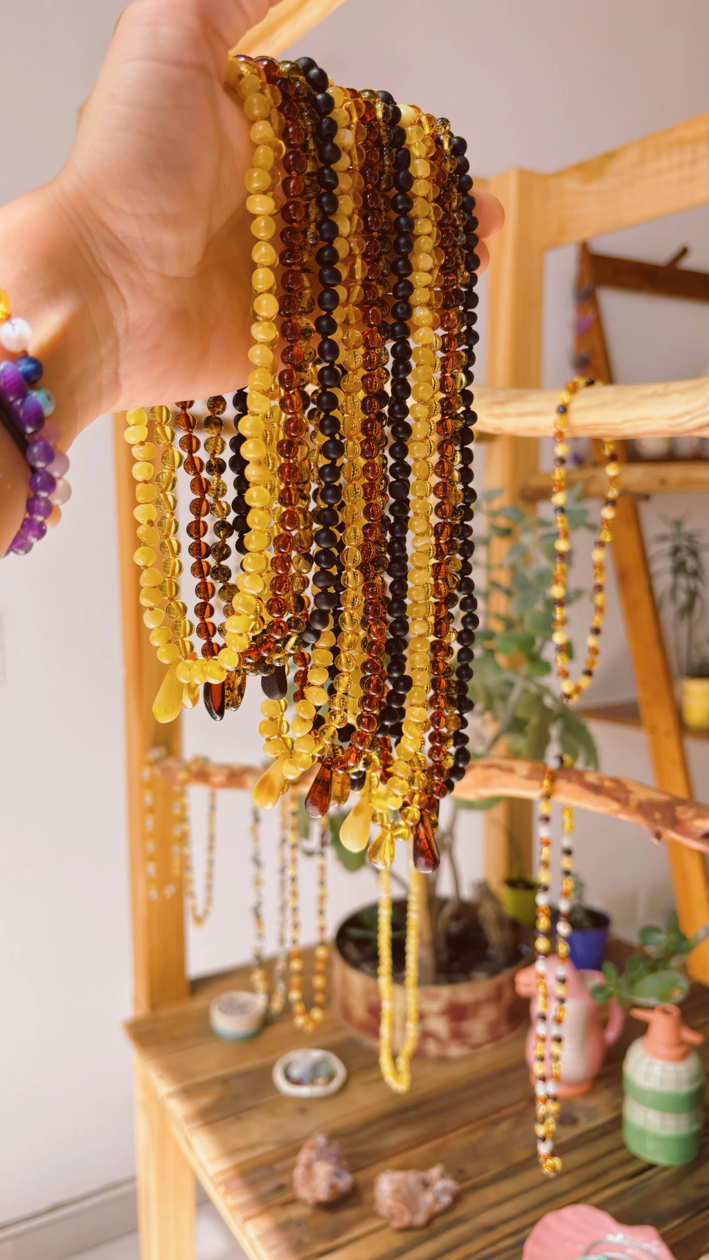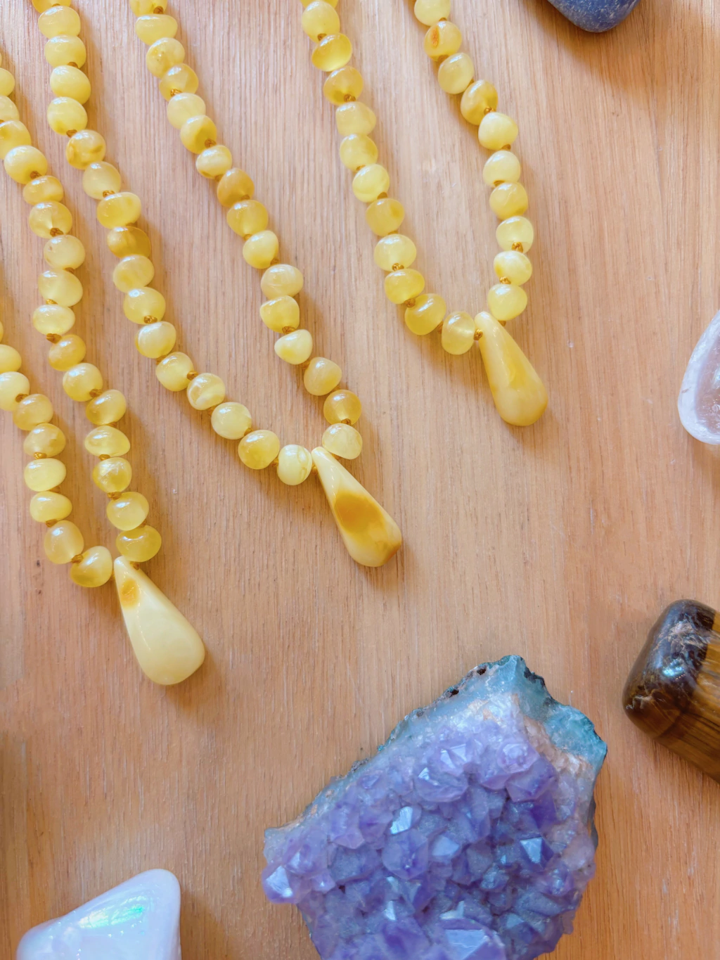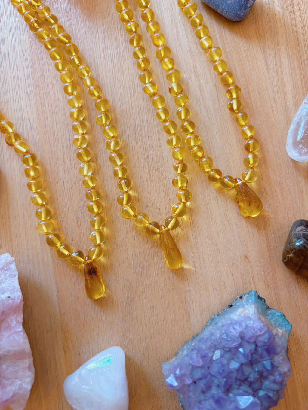 Vemos como queda uno de 45 cm en el collar gota miel y 50 cm en el collar cognac sin pulir