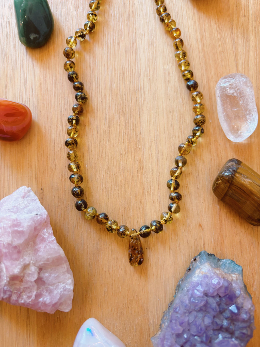 El Collar Gota de Ámbar es una pieza clásica que destaca por su elegante dije en forma de gota, hecha con ámbar de alta calidad. Ideal para quienes buscan una joya atemporal que aporte armonía, bienestar y estilo.