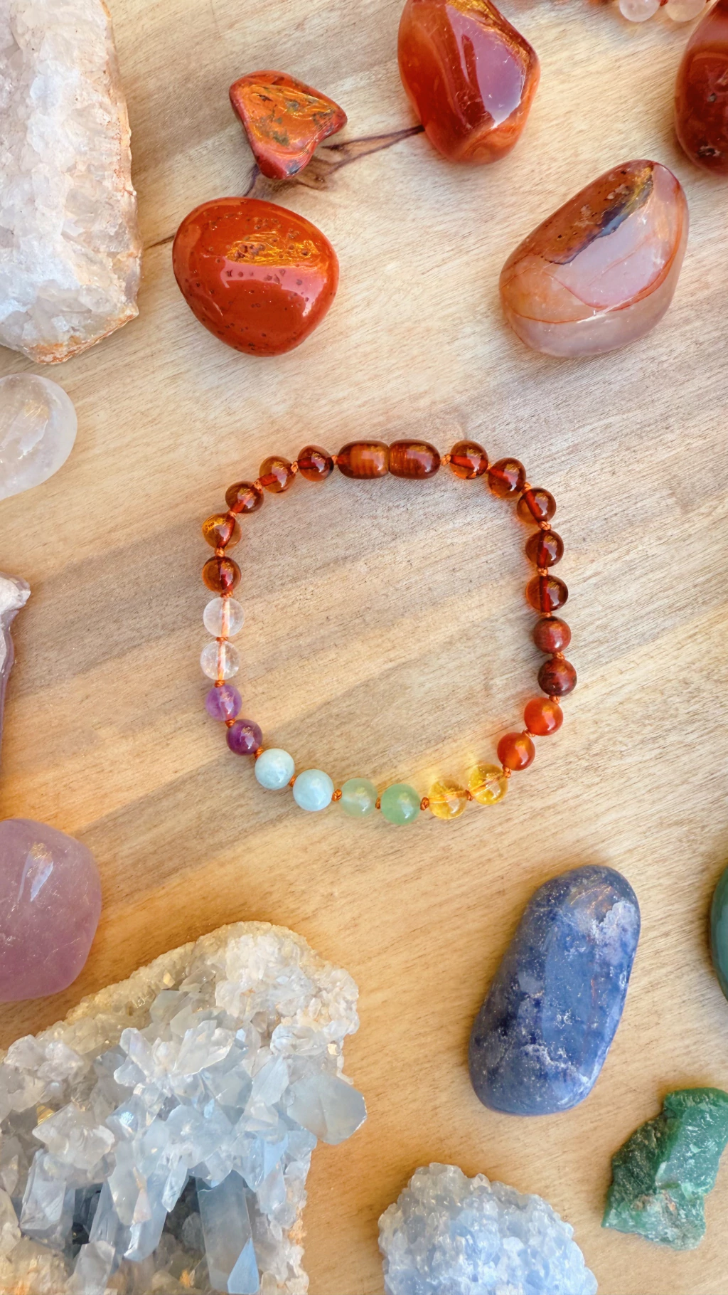 Armado con hilo extra resistente, anudado entre cada cuenta para mayor seguridad.
