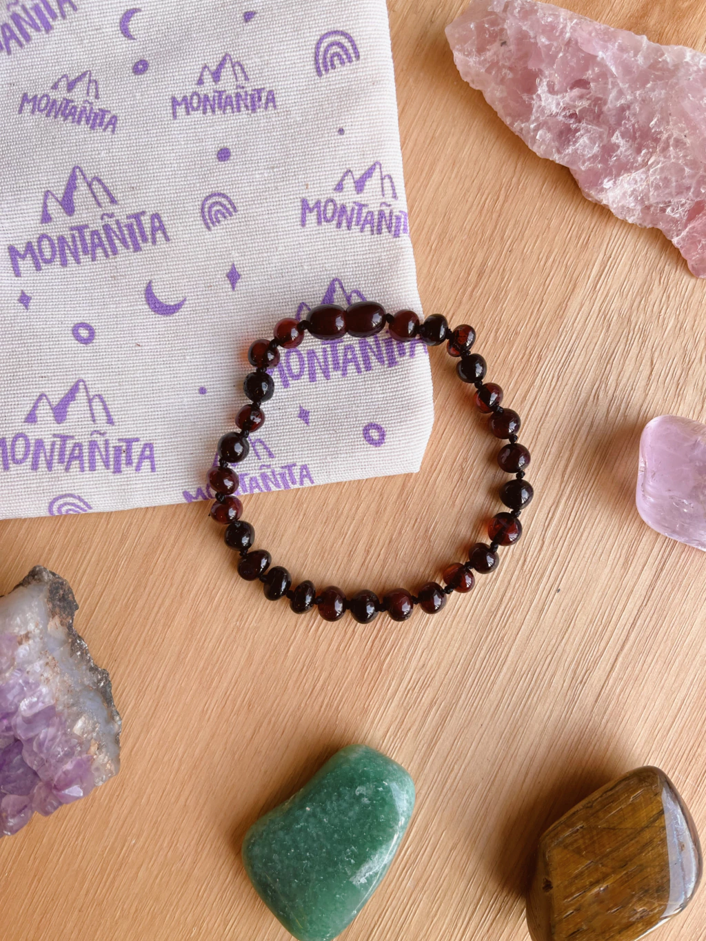 El Ámbar Cherry contiene ácido succínico, que al entrar en contacto con el cuerpo es absorbido por el torrente sanguíneo, actuando como analgésico y antiinflamatorio natural.