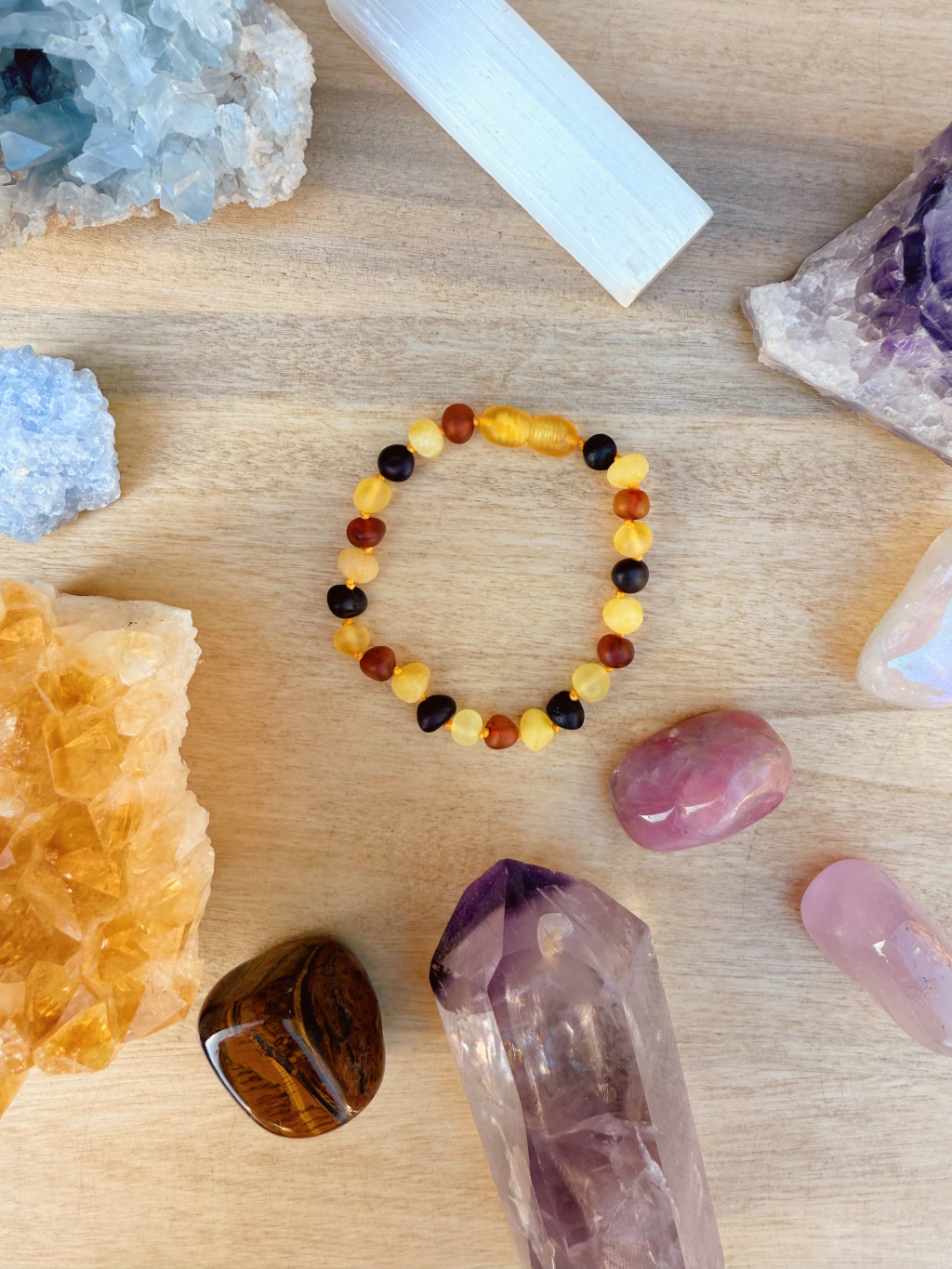 Disponible en sus distintos tonos de Ámbar Miel, Manteca, Cognac y Cherry sin pulir, esta pulsera/tobillera es una pieza versátil y cargada de energía.
