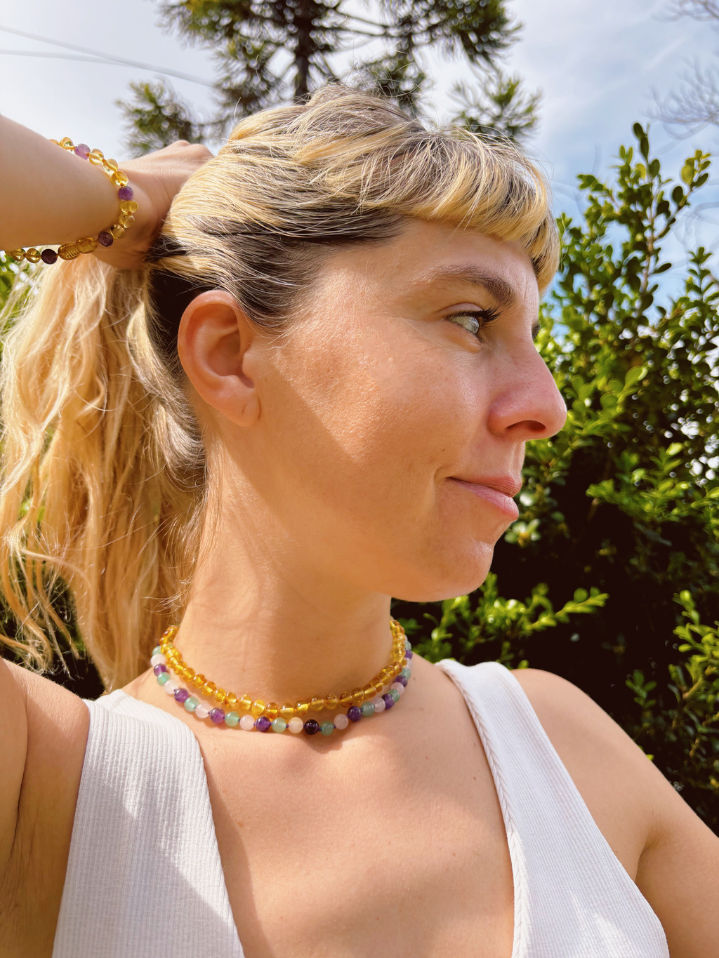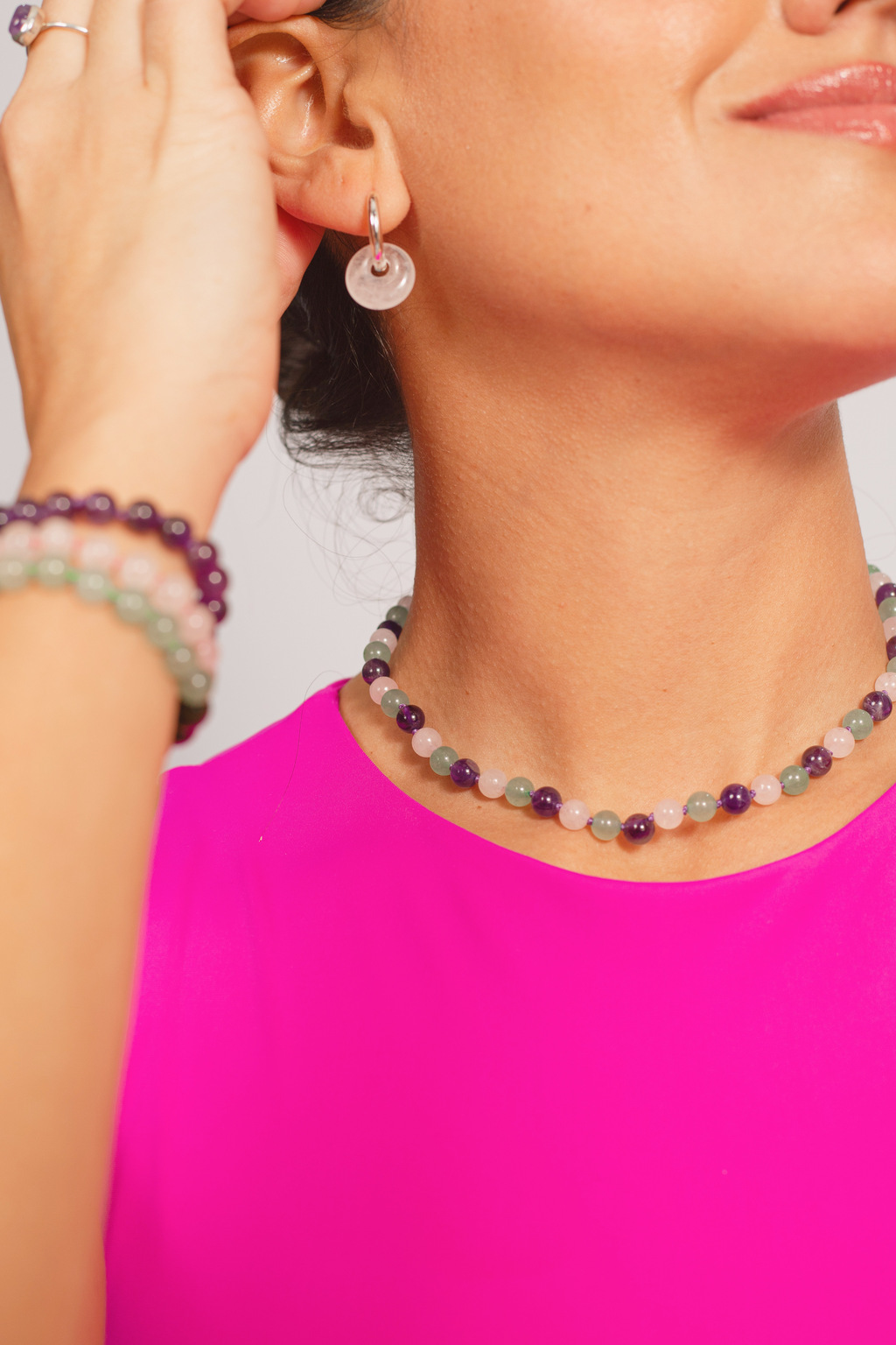 En "Diseños Montañita" vas a encontrar creaciones propias, hechas a mano con mucho amor y paciencia. Collar Fortaleza 40 cm Es la union de Amatista, Cuarzo Rosa y Cuarzo Verde. CONSULTAR POR ESTE MODELO, PODEMOS ARMARLO A TU MEDIDA! ❤️