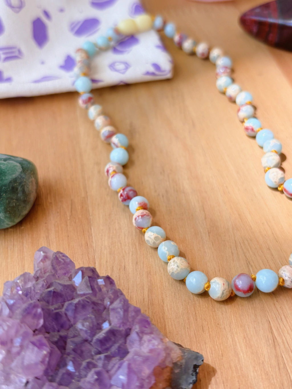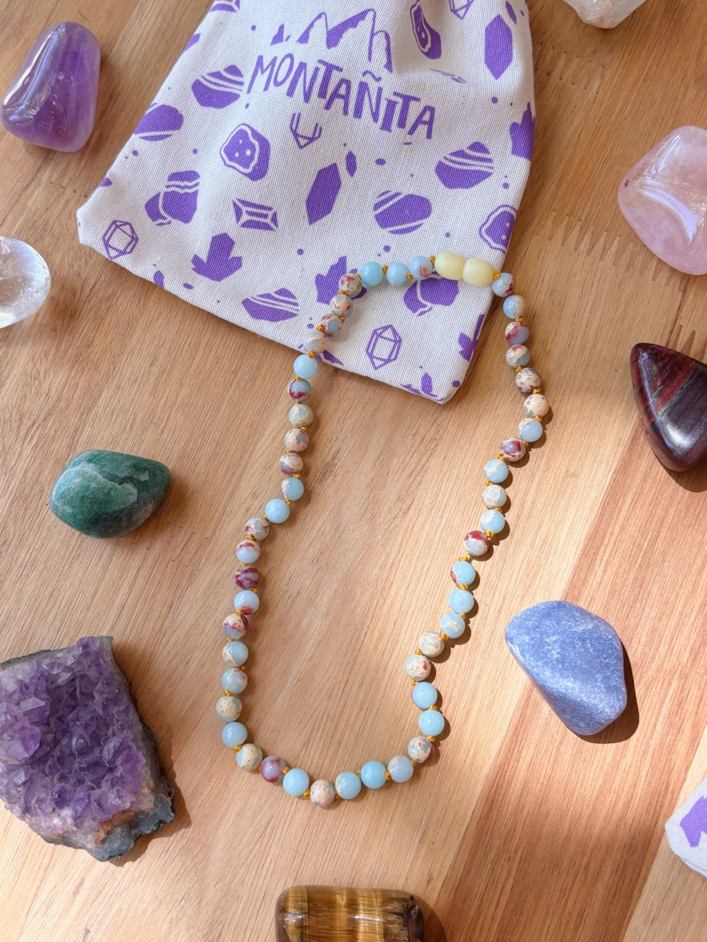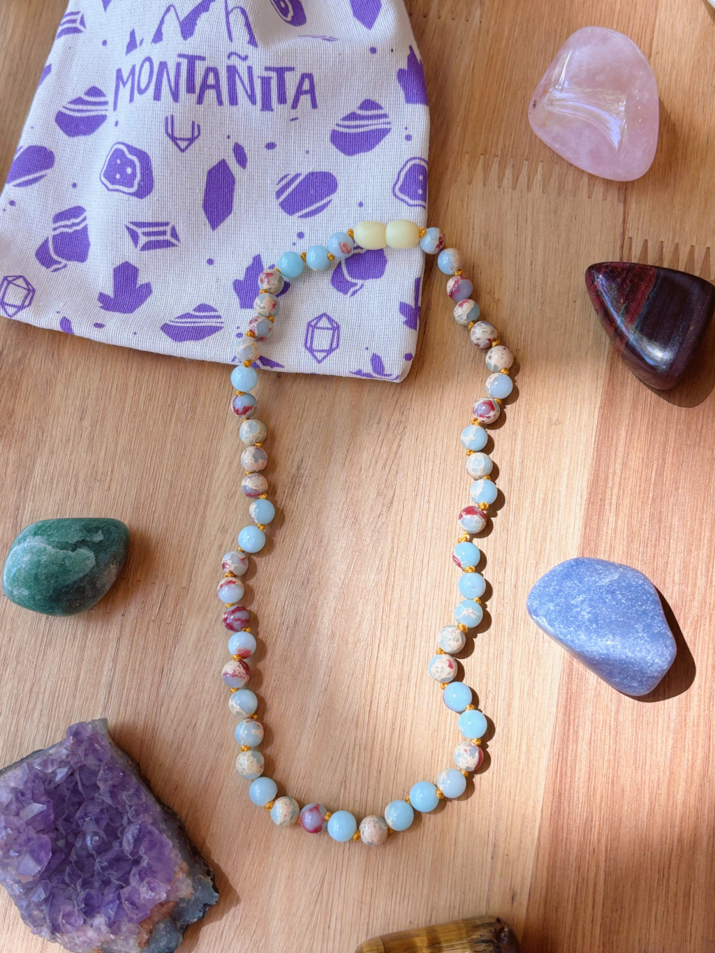 El larimar es una piedra espiritual que infunde paz, amor y serenidad. Ayuda a armonizar el corazón y la mente, aportando claridad, alegría y fortaleza. Favorece la comunicación y la expresión. Es especialmente positiva para sanar los problemas de la garganta y para disolver los bloqueos en el pecho.